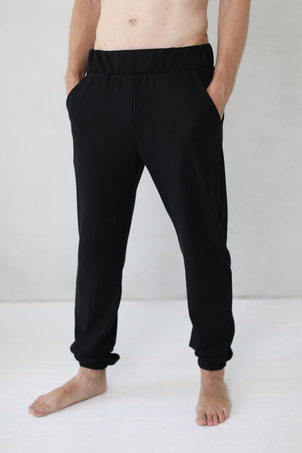 ◈ Patogios vyriškos laisvalaikio kelnės su plačia guma juosmens dalyje ir suraukimu klešnių apačioje.