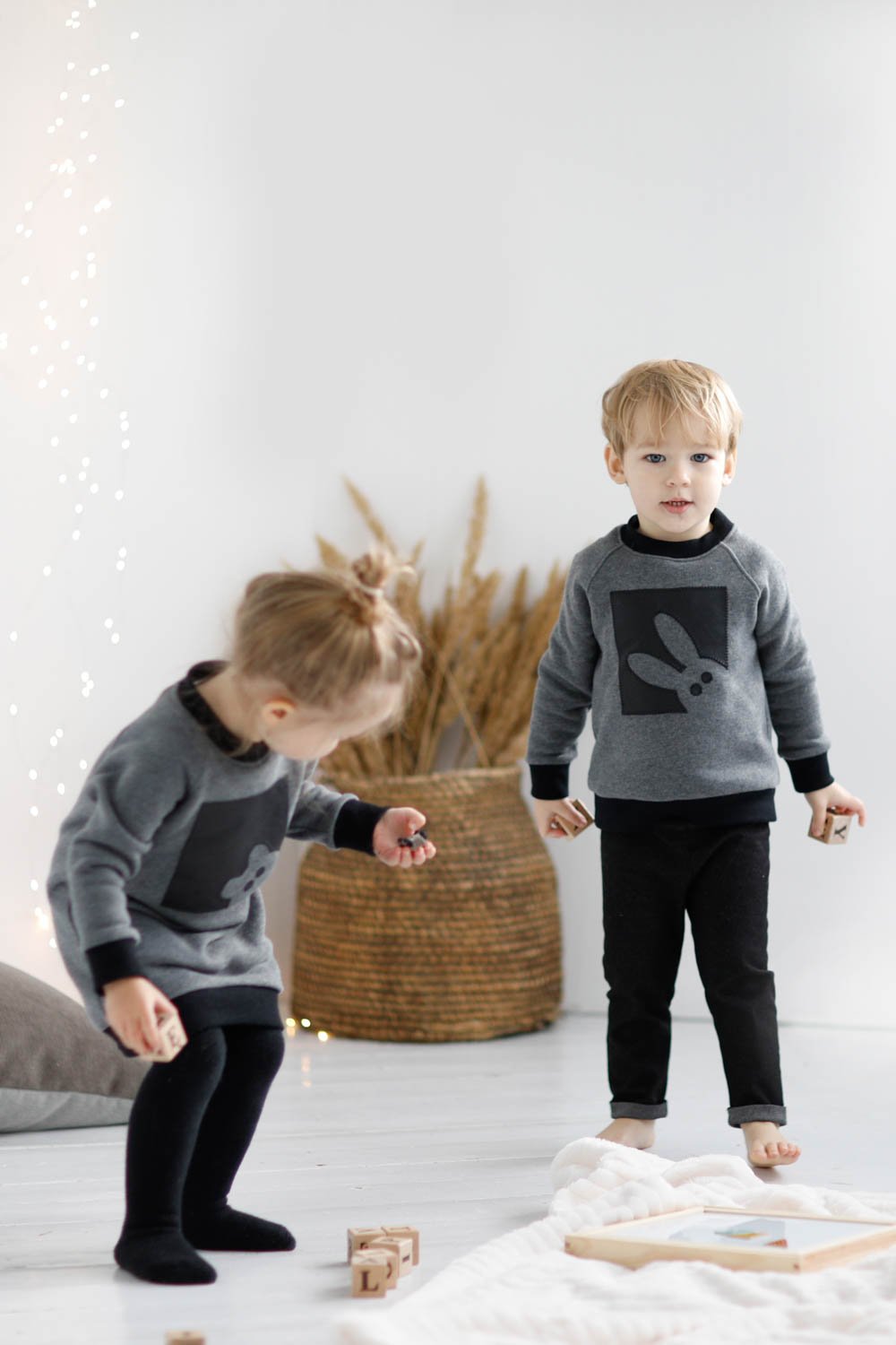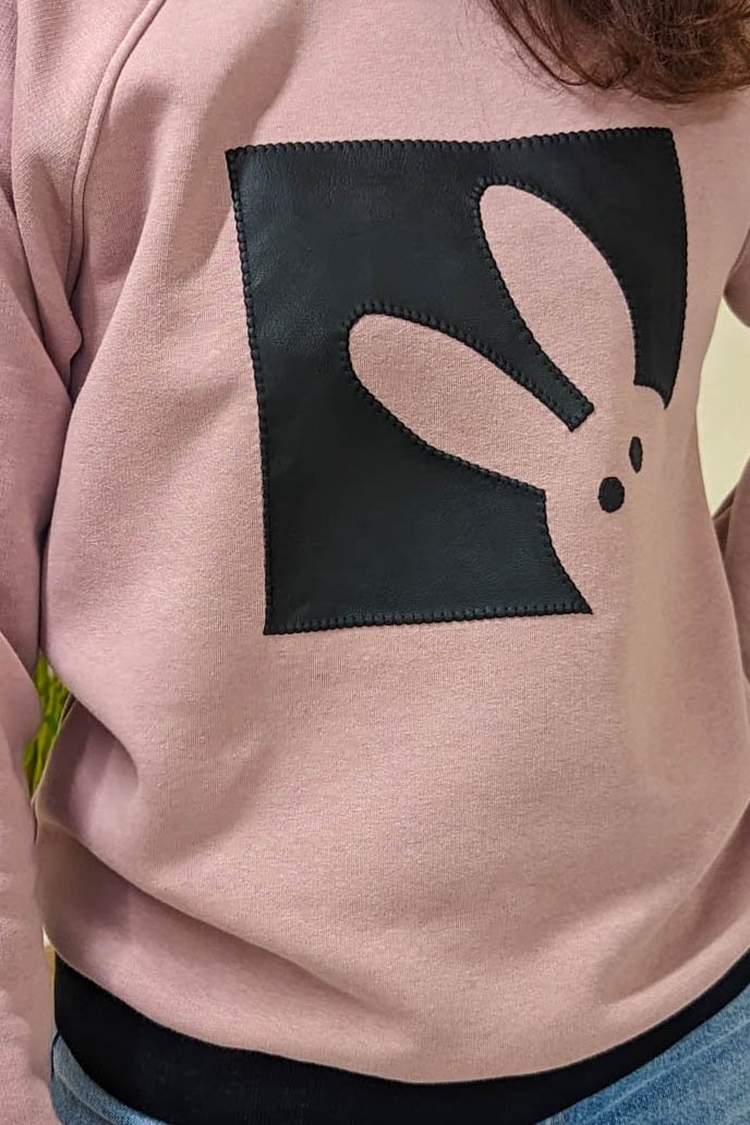 Patogus, šiltas ir linksmas vaikiškas džemperis su rankų darbo eko odos KIŠKUČIO aplikacija.